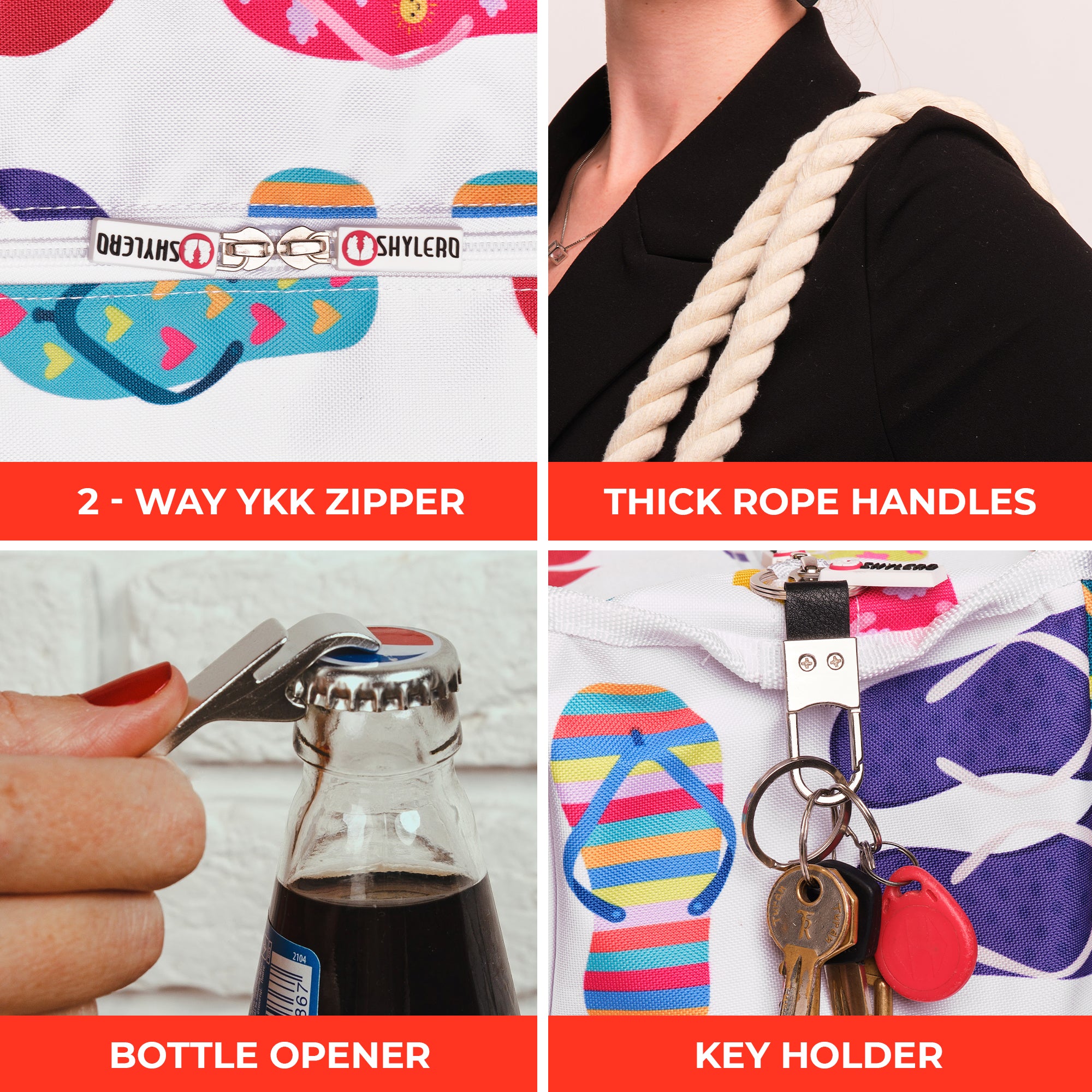 - STURDY, SOFT, COMFORTABLE ROPE HANDLES make SHYLERO beach tote a tremendous over-the-shoulder handbag for women