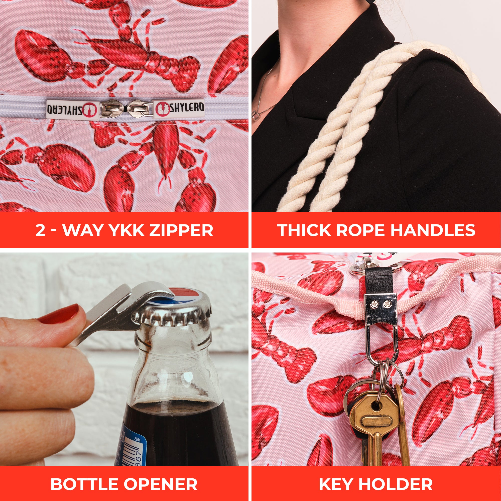 Beach Bag and Pool Bag | Water Repellent | Top YKK® Zip | Family Size | L22" x H15" x W6" | Lobsters