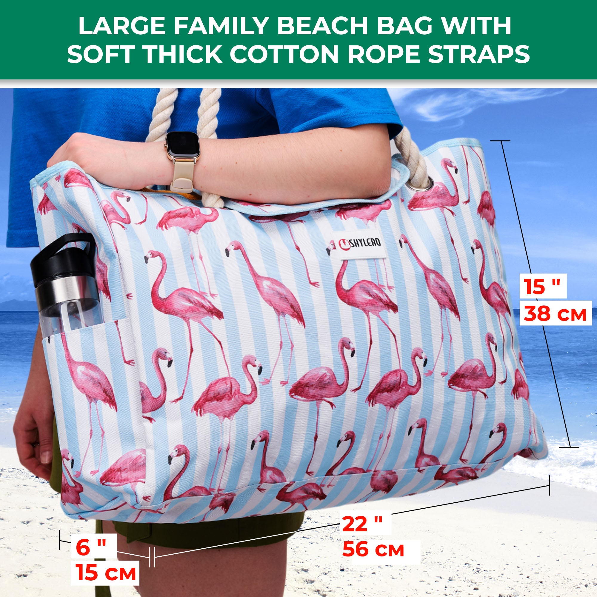 Beach Bag and Pool Bag | Water Repellent | Top Magnet | Family Size XXL | L22" x H15" x W6" | Pink Flamingo