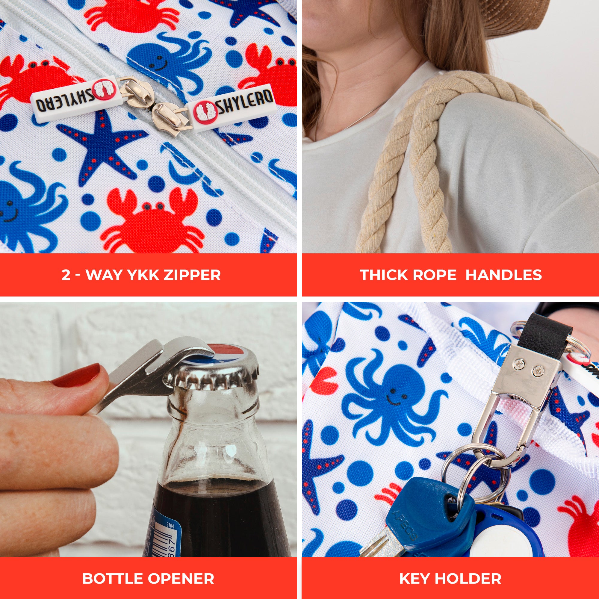 - STURDY, SOFT, COMFORTABLE ROPE HANDLES make SHYLERO beach tote a tremendous over-the-shoulder handbag for women