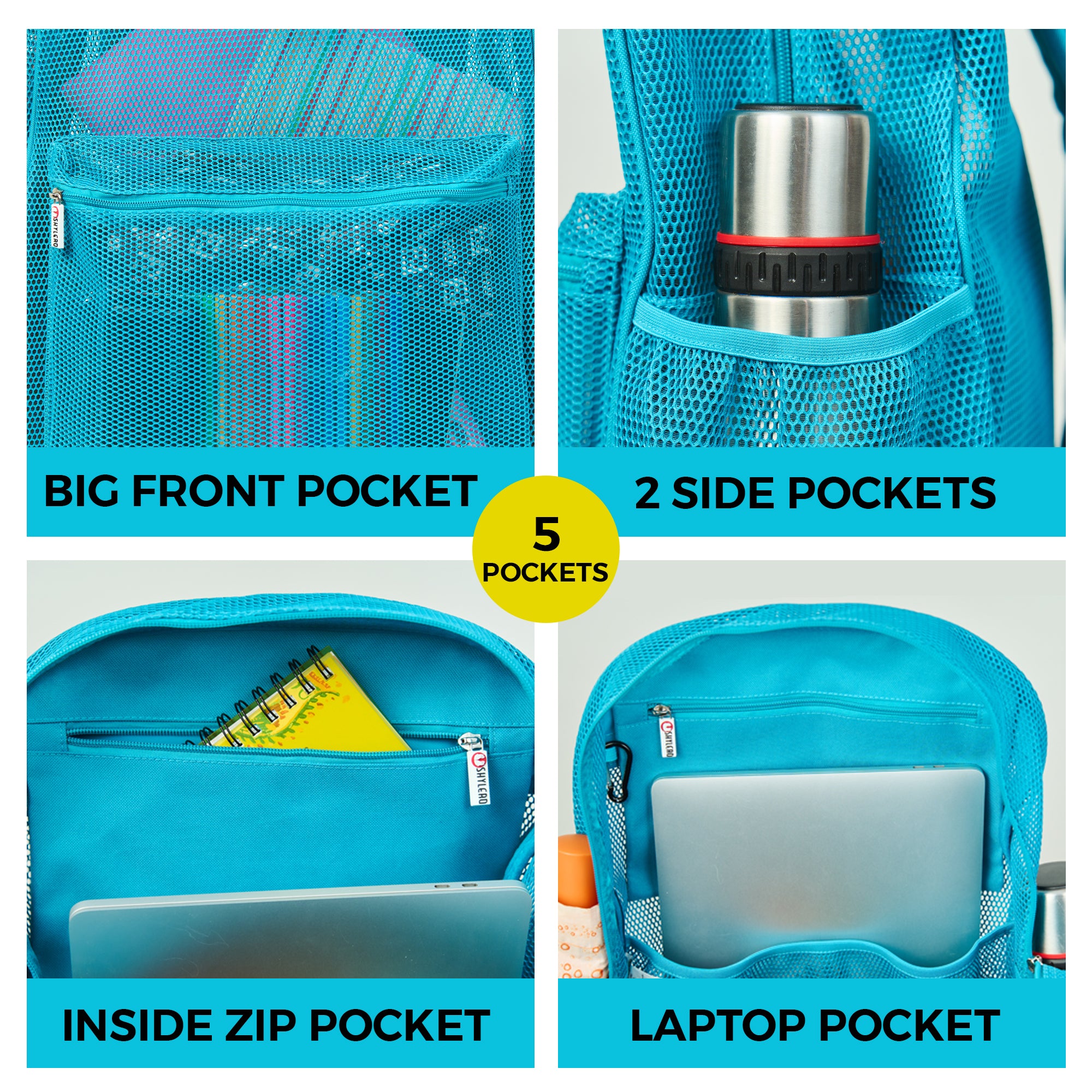 - LAPTOP POCKET fits a 17” computer in this extra-large sport mesh backpack for school