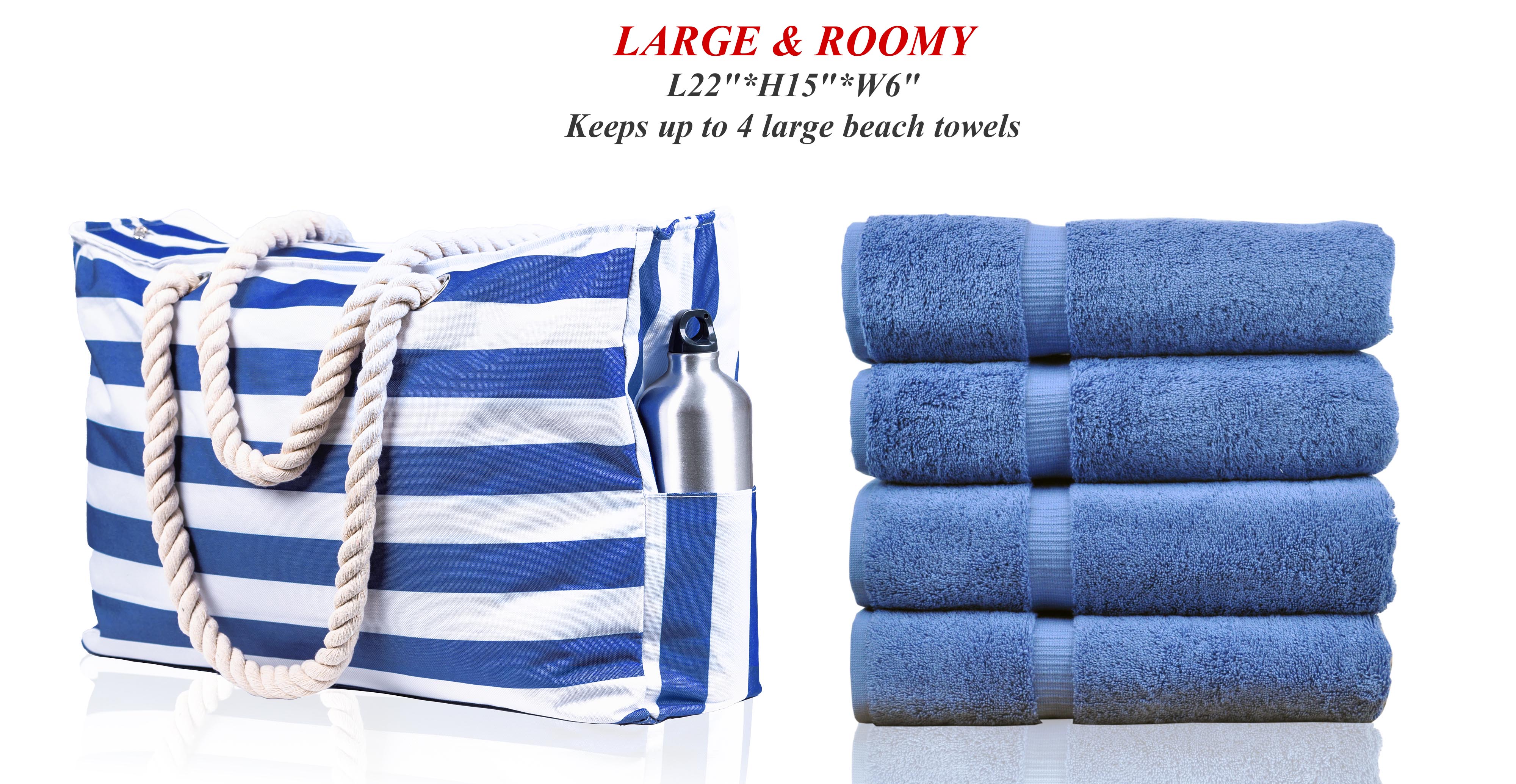- STYLISH & MULTIPURPOSE - with its classic nautical design, this really huge beach tote is perfect for beach family time, pool parties, picnics, and more!
