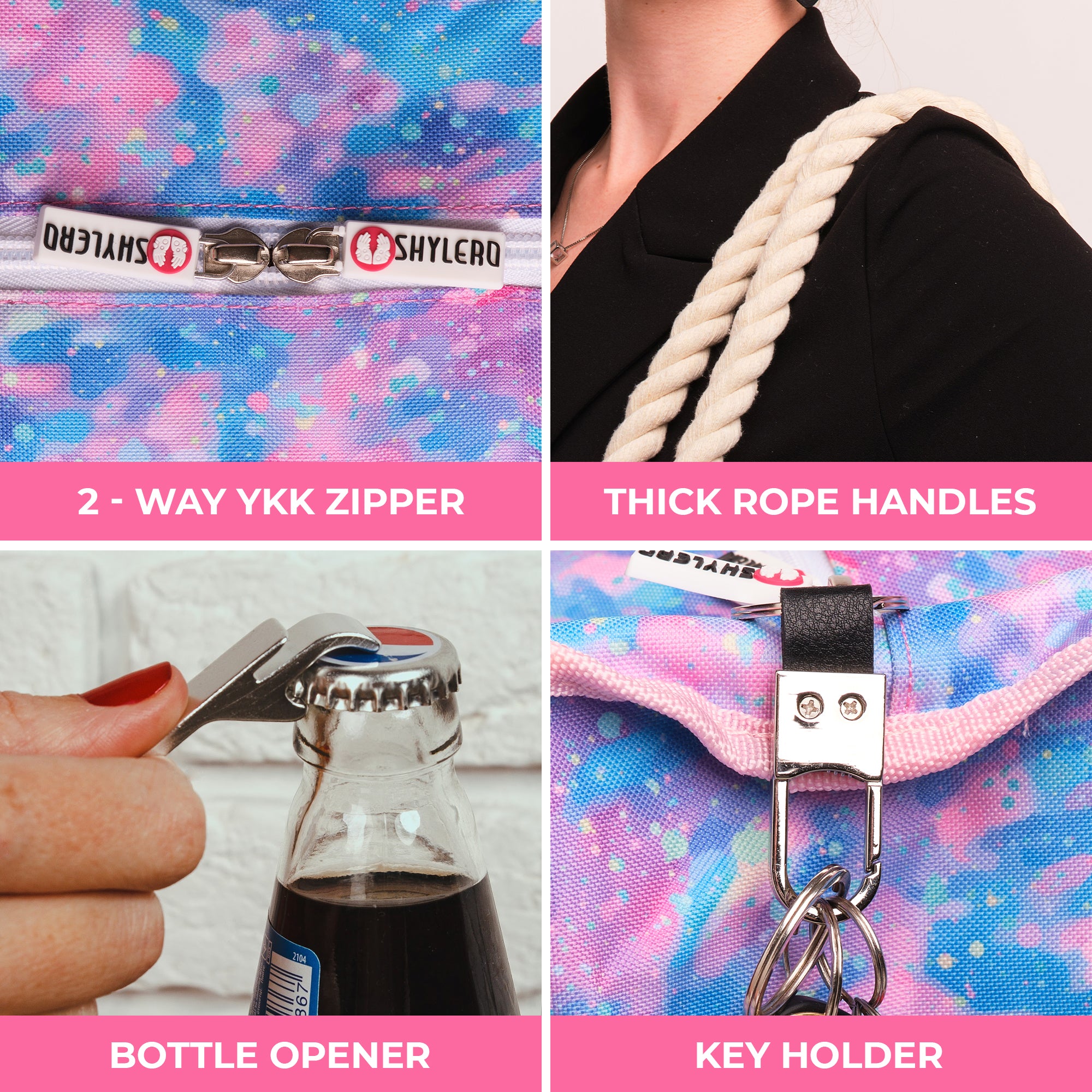 • STURDY, SOFT, COMFORTABLE ROPE HANDLES make SHYLERO beach tote a tremendous over-the-shoulder handbag for women